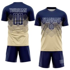 Custom Cream Navy-White Sublimation Soccer Uniform Jersey
