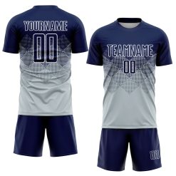 Custom Silver Navy-White Sublimation Soccer Uniform Jersey